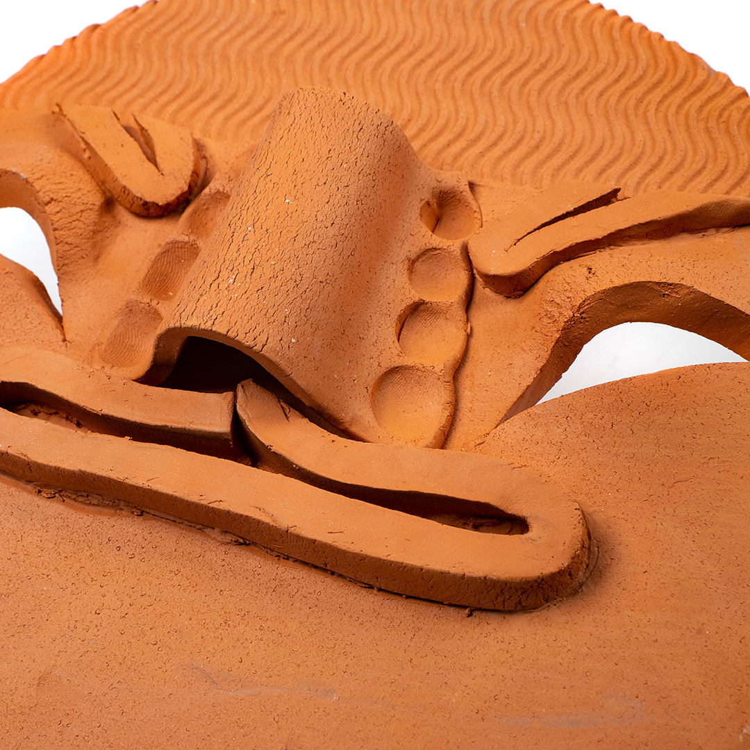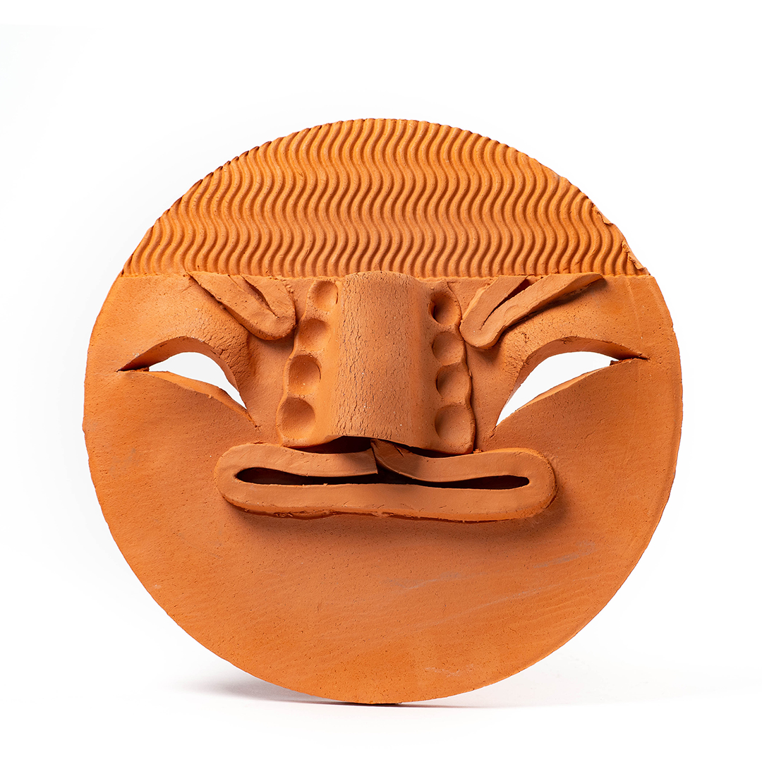 Handmade ceramic mask. 260mm diameter (think frisbee). Signature and date on the face. Due to the technique, the mask might not be a perfect circle shape and might have scratches or specks. Every pieces are unique.